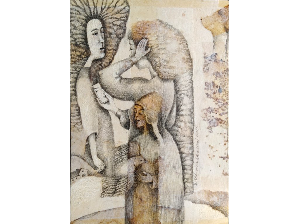 Kombinovaná technika, papír, překližka, fixováno, 2024