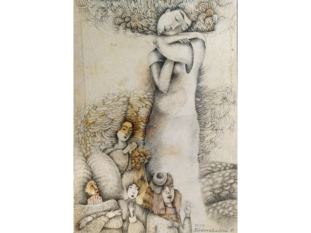 Kombinovaná technika, papír, překližka, fixováno, 2024