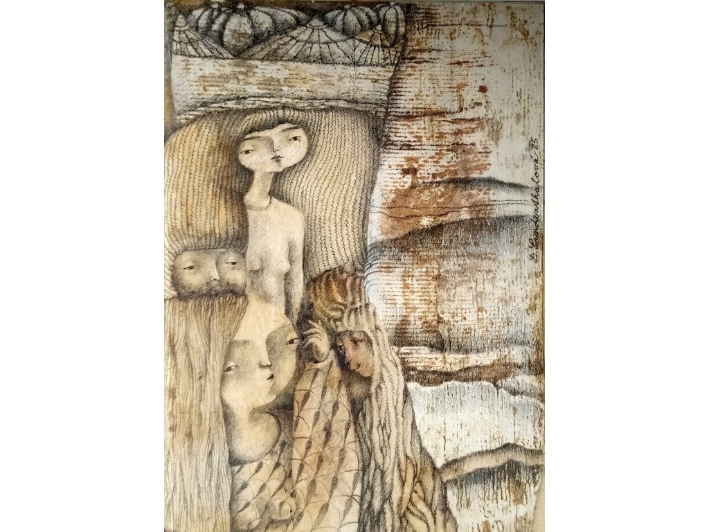 Kombinovaná technika, papír, překližka, fixováno, 2025